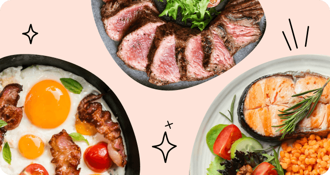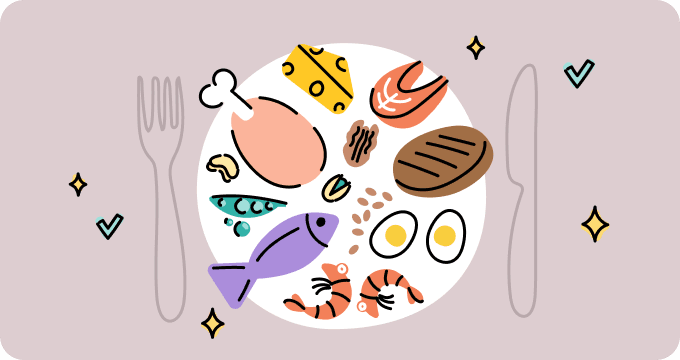 고단백 식품: 닭고기, 생선, 달걀, 그릭 요거트, 두부, 렌틸콩, 코티지 치즈.